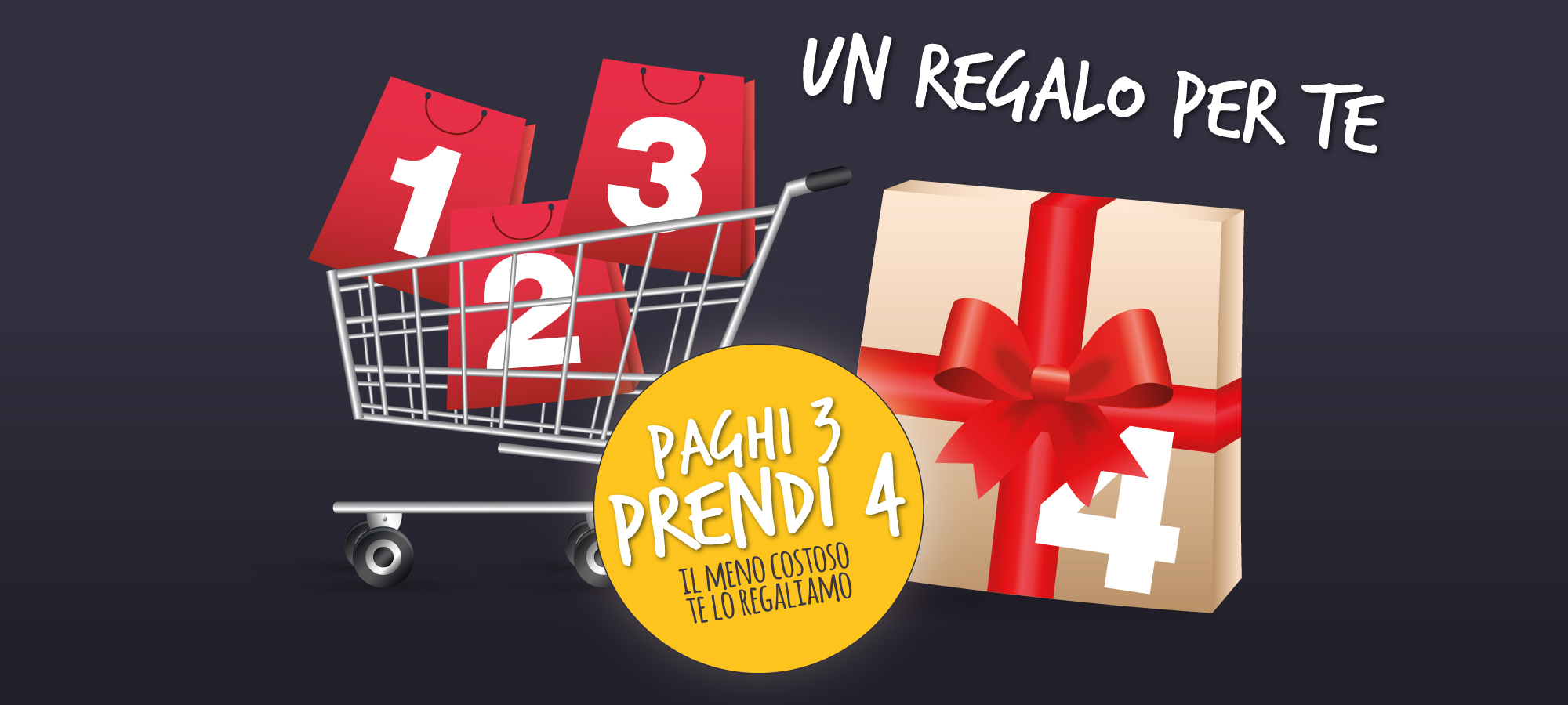 IN TUTTI I NEGOZI HB ADERENTI PRENDI 4 E PAGHI 3 Acquistando 4 prodotti il meno caro te lo regaliamo APPROFITTANE!!! Trova la sede più vicina a te